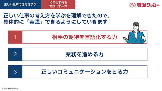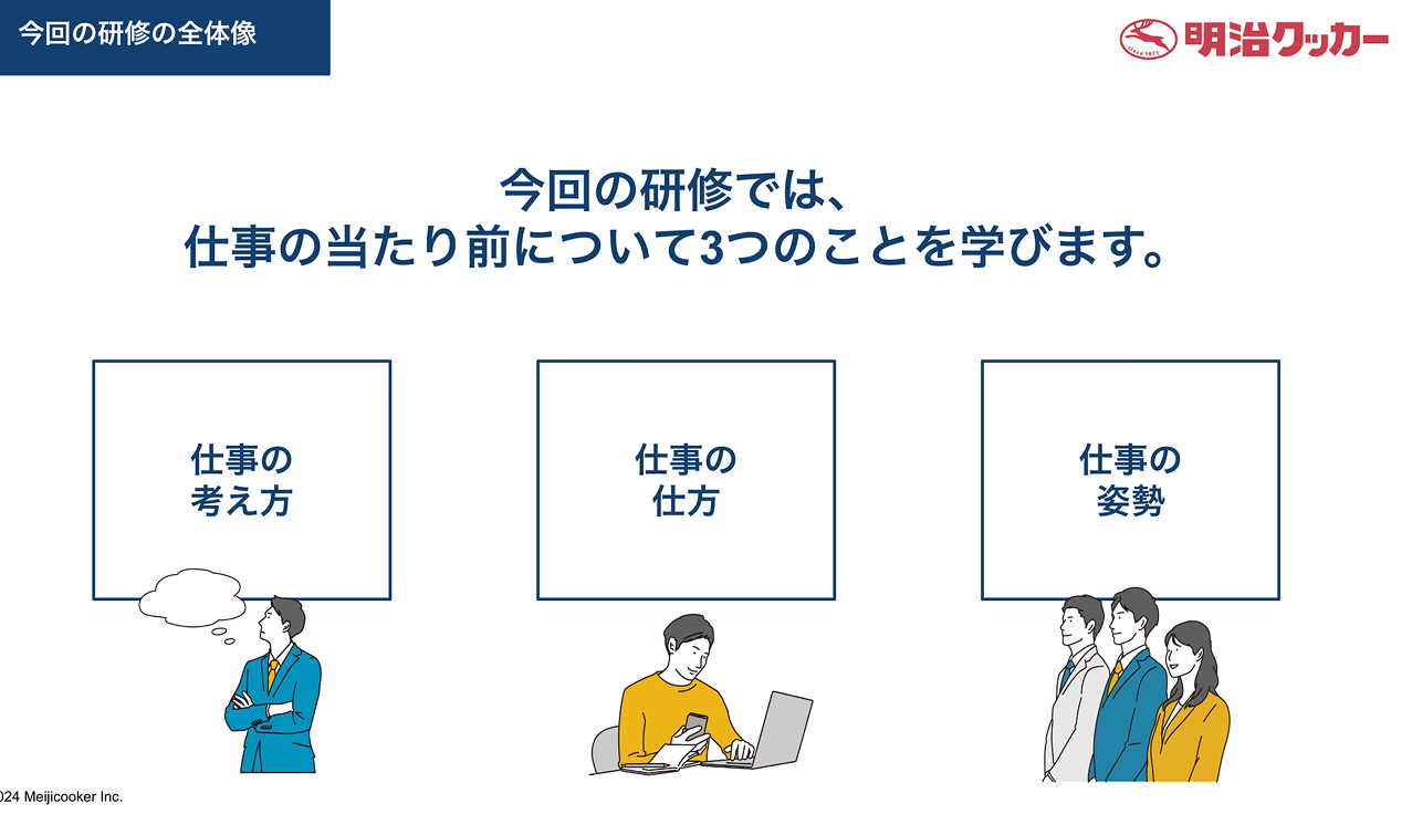 本研修では、普通的な仕事の「考え方」「進め方」「姿勢」について