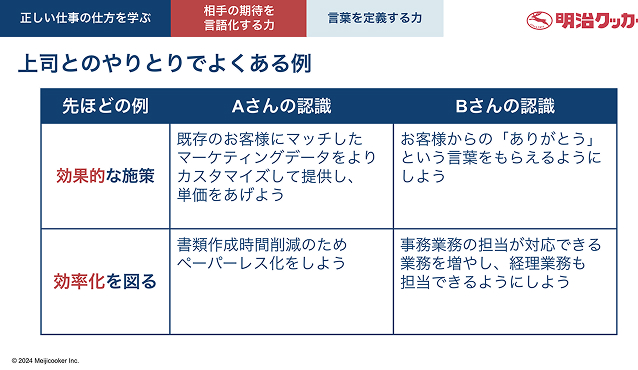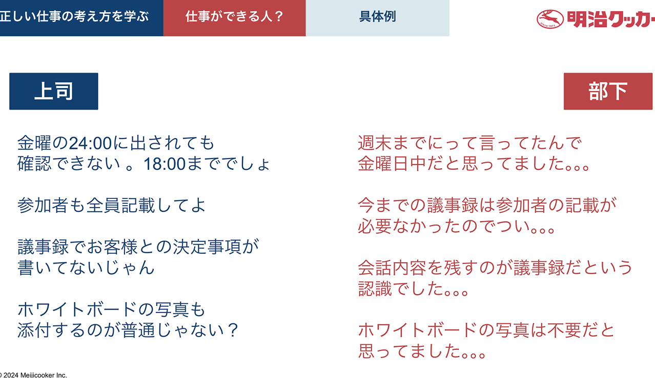 現場と上司共通の「仕事の基本編」、「仕事の応用編」